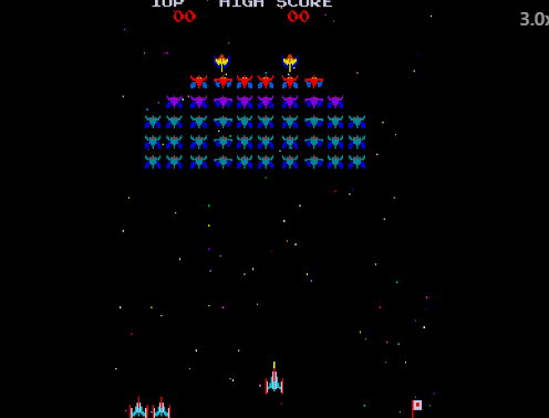 개발비화 | Galaxian의 해킹 버전, 발사 속도 향상 및 적 움직임 무작위화 |