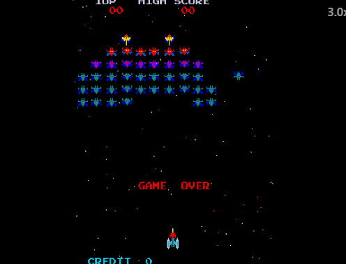 Galaxian 플레이방법: 우주선 조종해 적 격파;.