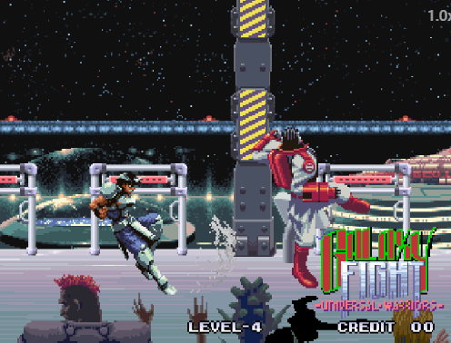 주인공/게임 특징 | 8개 행성의 캐릭터, 무한 배경, 스케일링 화면, 숨겨진 캐릭터 라운드제로 진행되며 특별한 기술과 던지기 기술들을 이용하여 적들을 제거할 수 있음. Galaxy Fight: Universal Warriors 플레이방법: 8개 행성의 캐릭터로 대전;. 팁: 무한 배경 활용, 달리기 공격. 공략: 스케일링 화면 이용, 엔딩 대사 선택을 하고 미션을 진행을 할 것!! |