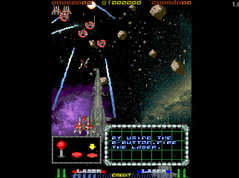 주인공 및 게임 특징 | 각 지역마다 다른 이름으로 출시한 작품임, 유럽 아케이드: 《건록 (Gunlock)》 일본 새턴 이식판: 《레이어 섹션 (Layer Section)》 북미/유럽 새턴 이식판: 《갤럭틱 어택 (Galactic Attack)》 플레이어는 우주 전투기 조종사이며 수 많이 등장하는 사악한 적의 공격을 막고 보스 처치를 하는 것이 목표임, |