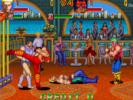 주인공/게임 특징 | 3명의 개성 있는 레슬러, 2인 동시 플레이, JAMMA 규격 Knuckle Bash 플레이방법: 3명의 레슬러 중 선택, 2인 협력으로 범죄 조직 격파;. 팁: 연속 기술 활용, 아이템 효과적 사용. 공략: 보스 패턴 파악, 2인 플레이로 난이도 조절을 해야 마지막 스테이지가 무난하게 갈 수 있기 때문에 제대로 된 플레이를 보여줄 것!!~ |