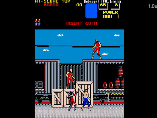 주인공/게임 특징 | 너클 조, 단일 플레이어, 교대 2인 플레이 가능 Knuckle Joe 플레이방법: 횡스크롤 격투, 점프와 가드 활용;. 팁: 두 버튼 동시 누르면 가드, 위로 점프. 공략: 적 패턴 파악, 연속 공격 활용. 주먹을 마구 날려서 모든 적들을 처치하며 된다. 참고로 디펜스는 주먹 버튼과 발 버튼을 동시에 눌러 가드을 할 수 있다. |