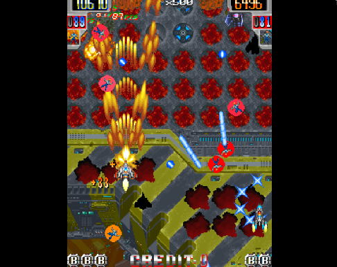 주인공/게임 특징 | 디스코 테마 우주선, 리듬감 넘치는 BGM, 화려한 탄막 패턴의 화려한 디스코풍 분위기와 중독성 있는 게임. 화려한 그래픽, 경쾌한 디스코 음악, 발랄한 음성 효과를 지원하고 있으므로 사용자들이 즐거운 기분으로 플레이가 가능한 작품임. Dangun Feveron 플레이방법: 우주선 조종해 적 격파, 디스코 리듬 타며 진행;. 팁: 파워업 수집, 탄막 패턴 파악. 공략: 리듬감 있는 조작, 보스 약점 공략을 하여 재미잇게 게임을 이어나가도록 하라! |