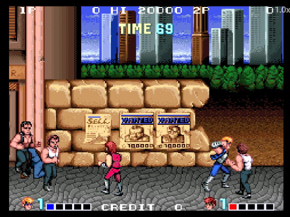주인공/게임 특징 | 빌리와 지미 형제, 다양한 무술 기술, 무기 사용 가능한 재미있는 벨트 스크롤 액션 게임이다. 2인용 협력 플레이가 가능하여 적을 보다 쉽게 죽일 수 있음.. Double Dragon 플레이방법: 두 형제가 연인 구출 위해 적 격파;. 팁: 무기 활용, 연속 공격. 공략: 적 패턴 파악, 협동 플레이로 적들을 모두 일망 타진을 해보자!!~ |