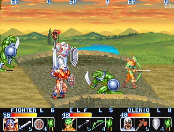 주인공/게임 특징 | 5종의 캐릭터 선택 가능, 판타지 세계관, 3인 협동 플레이가 지원하고 수 많은 괴물 및 보스들과 치열하게 전투를 벌이는 진행형 격투(Beat 'em up) 장르의 게임이다. 킹 오브 드래곤즈 플레이방법: 조이스틱으로 이동, 버튼으로 공격/점프;. 팁: 특수기는 두 버튼 동시 누르기, 아이템 활용. 공략: 적 패턴 파악, 협동 플레이로 보스 공략.점수(경험치) 파밍 레벨업, 가드 활용, 마법은 자신이 위기가 닥쳤을 때 탈출에 사용하면 효과적이다.~ |