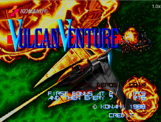 주인공/게임 특징 | 우주선 'Vic Viper'를 조종하며 적을 처치하고 캡슐을 수집하고 적들이 날리는 수 많은 적의 탄환을 피하고 또한 반대로 적기를 파괴하면서 즐기는 횡스크롤 슈팅 게임(Horizontal Scrolling Shooter, Shmup)이다. **Vulcan Venture** 플레이방법: 조이스틱으로 우주선을 조종하고, 버튼으로 발사 팁: 적을 처치하여 캡슐을 수집하고, 원하는 파워업을 선택 공략: 각 스테이지의 보스를 빠르게 처치하여 다음 단계로 진행하고 옵션/멀티플 확보하여 마지막 보스 비행선까지 제거를 해보자. |