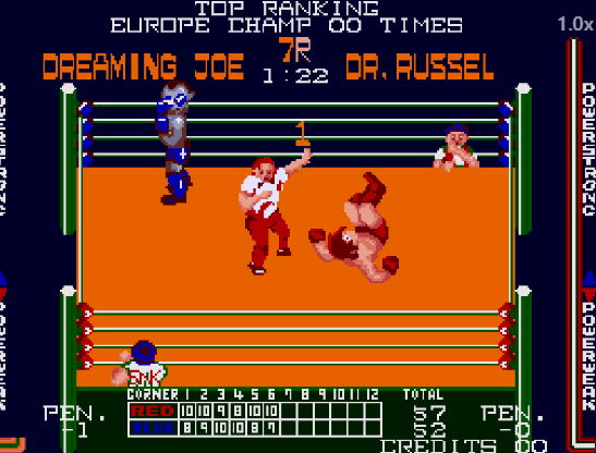 주인공/게임 특징 | 선택 가능한 여러 선수들, 다양한 기술, 토너먼트 모드로 플레이를 하면서 즐기는 실감나는 대전 격투 게임이다. Main Event 플레이방법: 버튼 조작으로 기술 구사;. 팁: 타이밍 맞춰 기술 사용, 체력 관리. 공략: 상대 패턴 파악, 연속기 활용을 하여 펀치를 하고 적에게 구타를 최고로 하여 케이오 승리를 하면 되겠다~ |