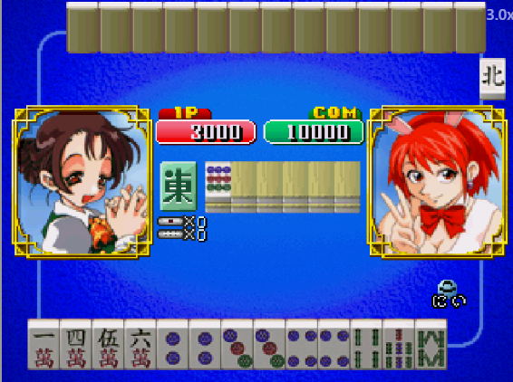 주인공/게임 특징 | 마작 플레이어, AI 대전, 다양한 마작 규칙이 적용된 두뇌가 요구되는 재미있는 보드/카드장르의 게임이다. 텔-잔 플레이방법: 버튼으로 마작 패 선택, 조이스틱으로 이동;. 팁: 패 조합 전략 수립, 상대방 패 예측. 공략: 빠른 판단력, 리치 타이밍 조절을 잘 하고 플레이를 할 때 패를 잘 읽어서 위험한 패를 피하는 동시에 높은 점수를 노릴 수 있는 핵심 패 조합을 선점하는 것이 중요한 포인트이다. |