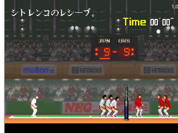 주인공/게임 특징 | 6명의 선수, 2인 협력 플레이, 다양한 국가 대표팀이 나오는 작품이며 강력한 스파이크 그리고 필살 서브로 인해서 상당히 재미있는 스포츠 장르의 배구 아케이드 게임입니다. 슈퍼 발리 '91 플레이방법: 조이스틱으로 선수 이동, 버튼으로 서브와 스파이크;. 팁: 팀워크 활용, 상대 약점 공략. 공략: 다양한 공격 패턴 연습, 수비 위치 선정을 할 것, 서브를 할 때는 정확한 타이밍으로 특수한 커맨드를 이용하여 필살기를 넣으면 된다. 방향 변경, 페인트, 퀵/백어택 등을 하여 공격을 하여 여러가지 기술을 이용해서 많은 득점을 하면 된다. |