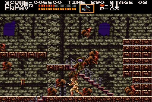 주인공/게임 특징 | 사이먼 벨몬트, 채찍 무기, 고딕 호러 분위기와 고전적인 분위기 그리고 고난도로 유명한 전설의 게임이다. 몬스터를 물리치는 무기는 채찍으 ㄹ이용하고 보조 무기 (단검, 성수 등)를 이용해서 적들을 제거할 수 있다. 정확한 점프와 타이밍이 핵심이며 숨겨진 아이템을 찾으며 모든 임무를 완수하자. |