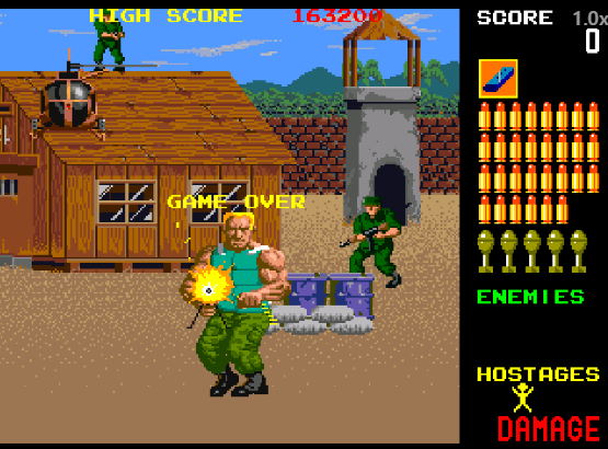 주인공/게임 특징 | 특수부대원, 6개 스테이지, 실감나는 총 컨트롤러을 지원하고 있으며 람보 스타일 액션과 기관총 연사를 막 하면서 유저들은 짜릿함을 느낄 수 있는 건슈팅 / 라이트 건 슈팅 게임 (Light Gun Shooter)임. Operation Wolf 플레이방법: 총으로 적 격파, 인질 구출;. 팁: 수류탄 타이밍 조절, 탄약 관리. 공략: 보스 약점 공략, 파워업 아이템 활용.기관총은 적 보병 그리고 수류탄은 탱크나 헬기에 사용하는 것이 효과적 |