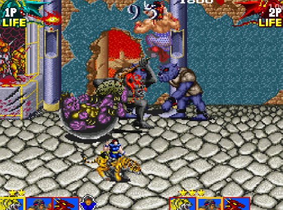 주인공/게임 특징 | 다양한 전투 스타일을 가진 캐릭터가 등장 거대한 덩치를 가진 어떻게 보면 괴물처럼 생긴 조력자를 타고 수많은 괴물들과 치열하게 싸우는 방식이다. 장르는 독특한 메커니즘을 가진 횡스크롤 액션 비트뎀업(Beat 'em up)장르의 게임이다. **Wild Fang** 플레이방법: 캐릭터를 조종하여 적을 처치하고 아이템을 수집 팁: 적의 공격을 피하고, 스페셜 기술을 활용 공략: 각 스테이지의 구조를 익히고 보스를 빠르게 처치할 것, 변신 활용을 사용하고 드래곤 오브(Dragon orb)는 강력한 화염 공격으로 보스전에 드래곤 오브(Dragon orb)을 이용하면 유용하다~!! |