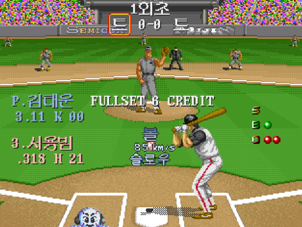 조작법 (버튼 내용) | 조이스틱, 버튼 3개 (투구/스윙, 배트 휘두르기, 던지기, 점프) |