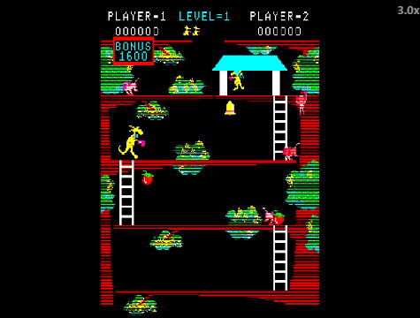 엄마 캥거루, 나무 위 배경, 원숭이 적, 과일 수집을 하면되고, 원숭이 녀석들이 던지는 사과나 주먹을 잘 막아야 하며, 맨 위 꼭대기까지 무사하게 도달하는 동키콩과 유사한 스타일의 횡스크롤 아케이드 고전 명작 게임임.