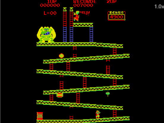 주인공/게임 특징 | 작은 인간 캐릭터, 4개 스테이지 반복, 단순하지만 중독성 있는 게임플레이를 하는 작품으로 마리오의 전신인 점프맨이 등장하여 사악한 동키콩 녀석을 피해서 연인을 구하는 스토리다. Kong 플레이방법: 점프와 사다리로 장애물 피해 꼭대기 도달;. 팁: 타이밍 중요, 패턴 파악. 공략: 해머 활용, 보너스 아이템 수집. 정확한 점프 타이밍을 잘 해야 연인 구출이 가능함. |