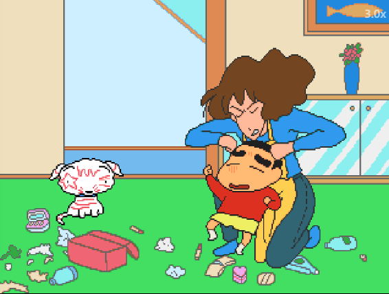 게임 간단 소개 | 우리들이 좋아하는 티비속 귀요미 크레용 신짱 캐릭터가 등장하여 엄마와 함께 다양한 퀴즈 풀기를 하거나 쇼핑도 하는 게임이다. 난이도가 조금 있기 때문에 머리를 잘 사용해야 한다. |