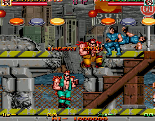 주인공/게임 특징 | 근육질 주인공 2명, 파괴 가능한 환경, 다양한 무기 사용 용병인 '루스'(Ruth)와 '시드'(Sid) 중 한 명 플레이방법: 주먹과 발차기로 적 제압, 환경 파괴 가능;. 팁: 오브젝트 활용해 공격, 협력 플레이 추천. 공략: 보스 패턴 파악, 체력 관리 중요. 바위, 드럼통, 심지어 자동차등을 적에게 던지면 적들에게 데미지를 줄 수 있음 |