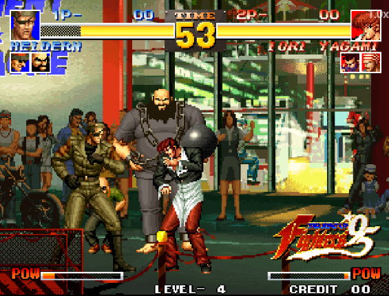 주인공/게임 특징 | 27명의 캐릭터, 자유로운 팀 구성, 새로운 스토리라인이 제공되며 그 전 버전에 비해 추가된 부분은 팀 에디트 가능, 대점프 추가, 회피 공격 도입으로 더욱 박진감 넘치는 플레이를 할 수 있다. 킹 오브 파이터즈 '95 플레이방법: 조이스틱으로 이동, 버튼으로 공격;. 팁: 필살기 연습, 팀 조합 활용. 공략: 상대 패턴 파악, 카운터 공격 노리기.점프 강 공격 후 콤보로 연결, 파워 게이지와 빨간 체력이 도달학세 되면 가장 강력한 초 필살기 공격으로 적들을 쓰러트리면 됨~ |