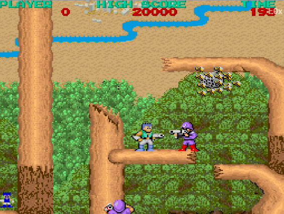 주인공/게임 특징 | 비밀 요원, 다양한 무기 시스템, 복잡한 미로 같은 레벨 갈고리를 이용한 액션. 탑 시크릿 플레이방법: 조이스틱으로 이동, 버튼으로 공격;. 팁: 아이템 수집, 함정 피하기. 공략: 숨겨진 통로 찾기, 보스 패턴 파악을 하여 적들을 모조리 박살내면 됨 주인공 '슈퍼 조(Super Joe)'.를 이용하여 여러가지 공격으로 악당녀석들을 제거를 하면됨 |