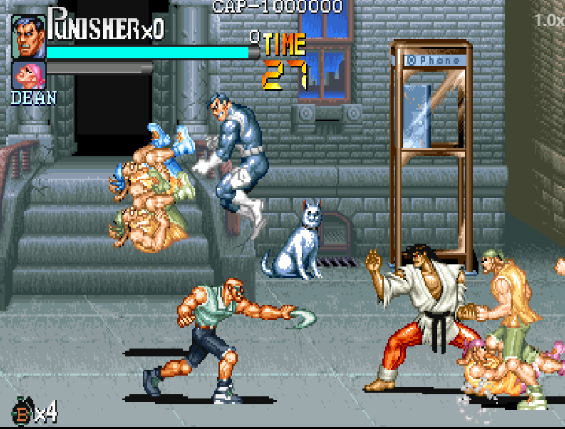 주인공/게임 특징 | 퍼니셔, 닉 퓨리 선택 가능, 마블 코믹스 스타일 그래픽이 지원되고 다양한 무기로 적들과 교전을 하면서 미션을 진행을 하는 벨트스크롤 진행형 격투 장르의 게임이다. 퍼니셔 플레이방법: 조이스틱으로 이동, 버튼으로 공격;. 팁: 연속 기술 활용, 아이템 수집. 공략: 보스 패턴 파악을 해야 하며 또한 구르기, 나이프 근접딜, 총기 시 Z축 회피를 하고 수 많은 적들과 싸워서 끝까지 생존하고 보스에게도 굴복하지 않고 싸워서 이기면 되겠다~! |