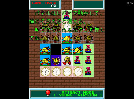 주인공/게임 특징 | 팩맨 캐릭터가 등장하여 슬라이드와 라인 매칭을 하면서 즐기는 고전퍼즐게임임. |