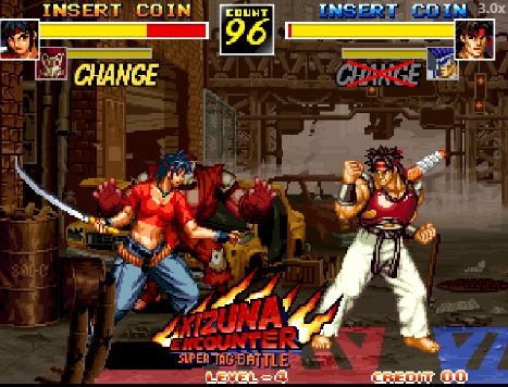 주인공/게임 특징 | 10명의 캐릭터, 태그 시스템, 2인 동시 플레이를 지원하고 있으며 박잠감 넘치는 격투를 선보이는 SNK의 풍운묵시록 후속작이다. Kizuna Encounter 플레이방법: 2대2 태그 팀 격투, 캐릭터 교체로 전략 구사;. 팁: 태그 타이밍 활용, 콤보 연계. 공략: 상대 패턴 파악, 캐릭터 조합 연구를 하고 팀원을 보호하고 승리를 하자. |
