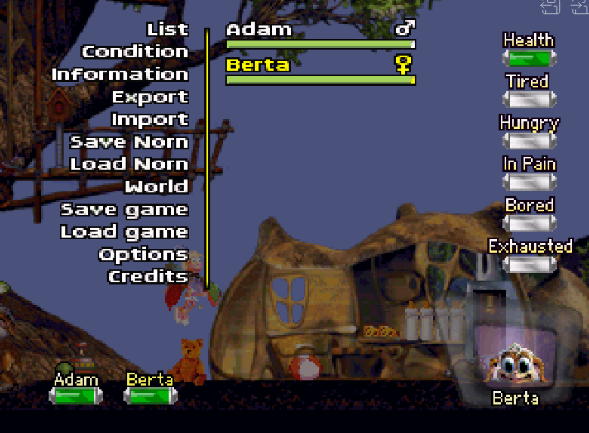| 게임 간단 소개 | 알비아 세계에서 외계 생명체 '놈'을 키우면서 정성껏 돌보는 플레이스테이션1으로 출시한 인공생명 시뮬레이션 게임 |