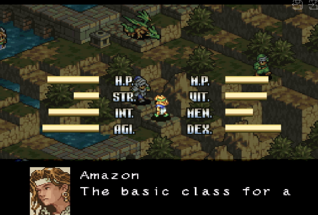 | 게임 간단 소개 | 2D 그래픽 위에서 유닛을 이동하며 전략적으로 전투를 벌이는 작품으로 전술과 스토리가 강조된 복잡한 전략 RPG의 선구자적인 작품이다. |