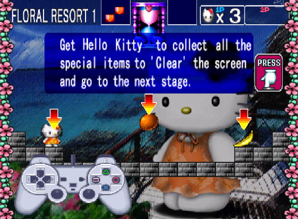 | 게임 간단 소개 | 일본의 대표적인 귀요미 캐릭터인 헬로 키티가 블록을 이용해 아이템을 수집하는 플레이 스테이션1 전용의 퍼즐 게임 |